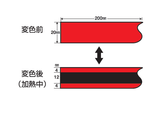 - 特定の温度で変色しても、冷却すると元の色にもどり、繰り返し使用可能