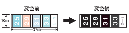特殊な耐熱素材を使用し、不可逆性サーモペイント®No.25~45を印刷しました。