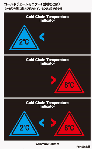 | CCM | 2℃以下で青い警告、8℃以上で赤い警告 |
