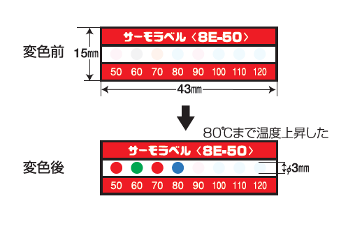 - 示温エレメントは、耐熱性フィルムで密封されていますので、水、薬品、油等、環境雰囲気の影響を受けません。