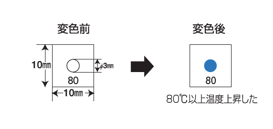 • 一度変色すると、元の色に戻らない不可逆性示温材です。