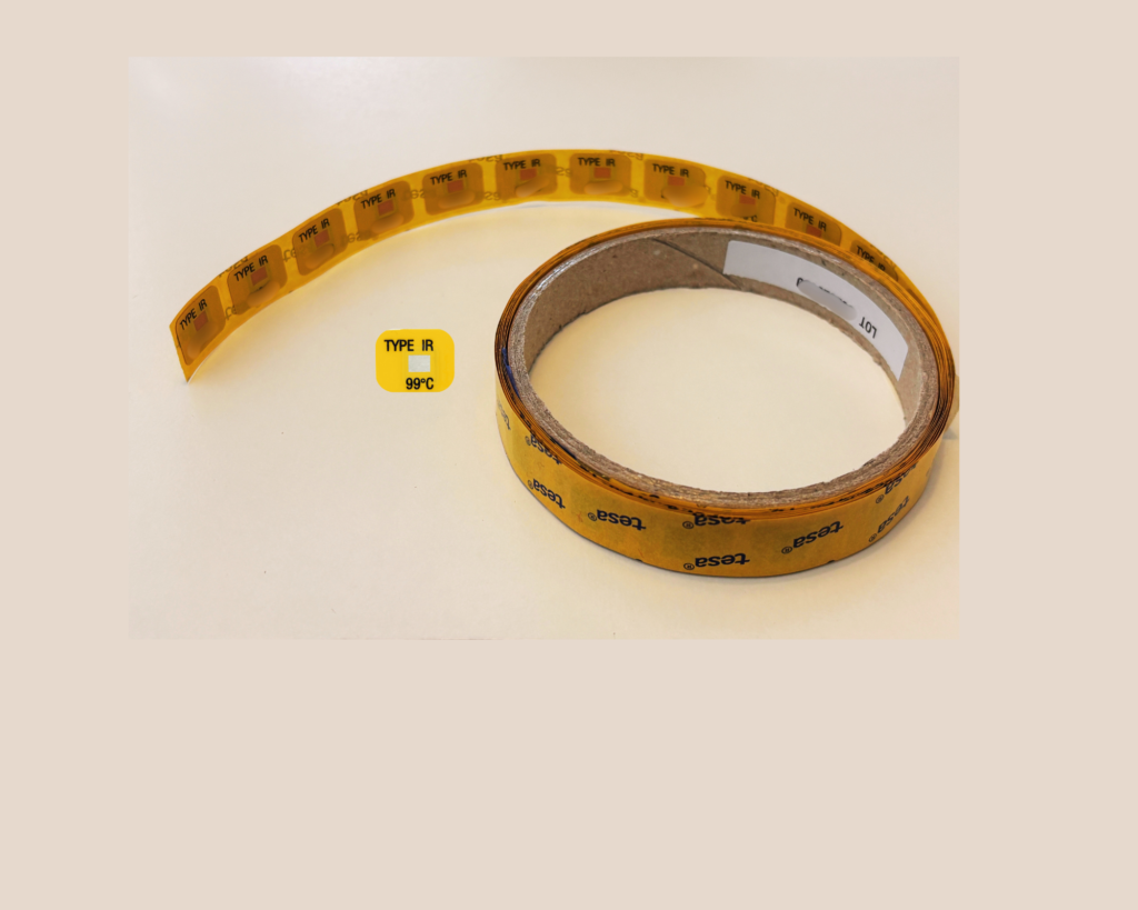 • サーモラベル®の裏面には、耐熱性粘着剤が塗布してありますので、裏紙(離型紙)を剥がすだけで、