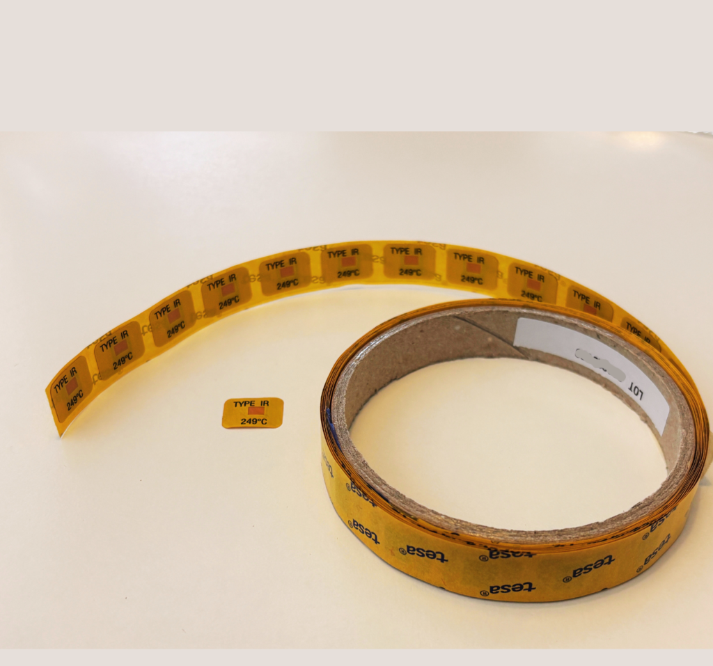 サーモラベル®の裏面には、耐熱性粘着剤が塗布してありますので、