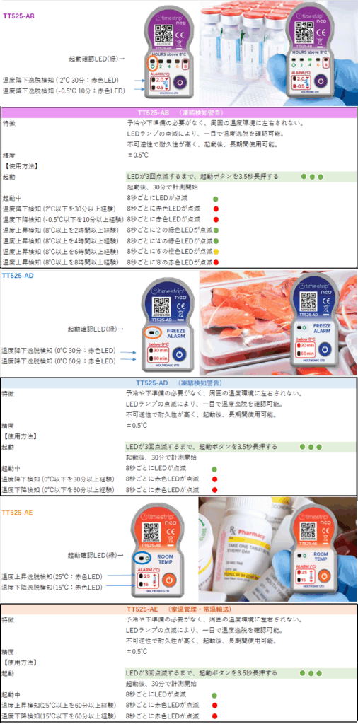 | 型番 | TT525-AB(2-8℃), TT525-AD (0℃), TT525-AE(15-25℃) |
