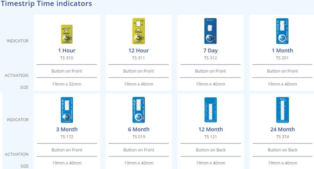 製品を初めて使用した際に3ヶ月のTimestrip®を起動し、製品や包装に貼り付けます。