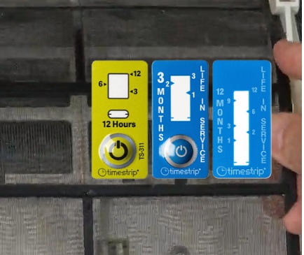 Timestrip®は時間を追跡し、3ヶ月が経過すると赤いラインで確認できます。