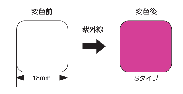 UVラベル®は紫外線を含む光の照射を受けたときに無色から有色へと発色し、紫外線の照射を検知するインジケータです。